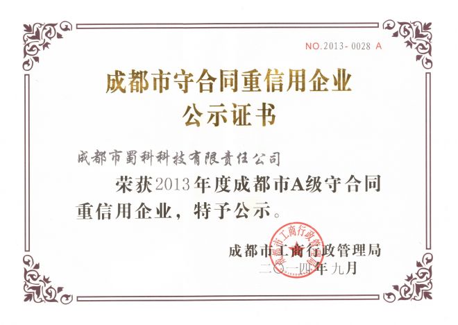 首頁 > 資質(zhì)認證 > 成都市守合同重信用公示證書… 成都市守合同重信用公示證書…