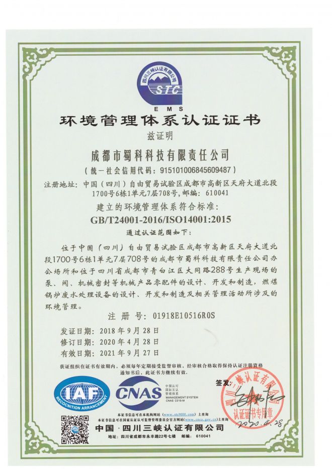 環(huán)境管理體系認(rèn)證證書
