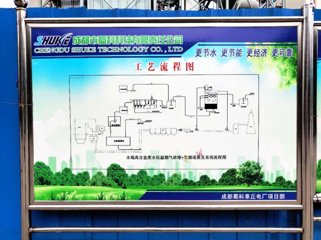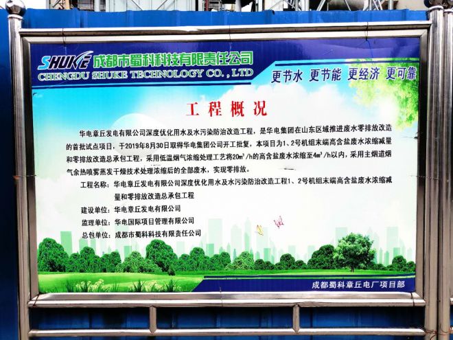 章丘項(xiàng)目是華電山東分公司實(shí)施的第二個(gè)全廠廢水零排放項(xiàng)目,也是目前國內(nèi)第二個(gè)采用低溫?zé)煔鉂饪s工藝+主煙道(余熱)蒸發(fā)工藝路線的電廠。該項(xiàng)目的全廠高鹽廢水零排放的整體工藝實(shí)施從設(shè)計(jì)、施工、安裝、調(diào)試全部由蜀科公司完成。